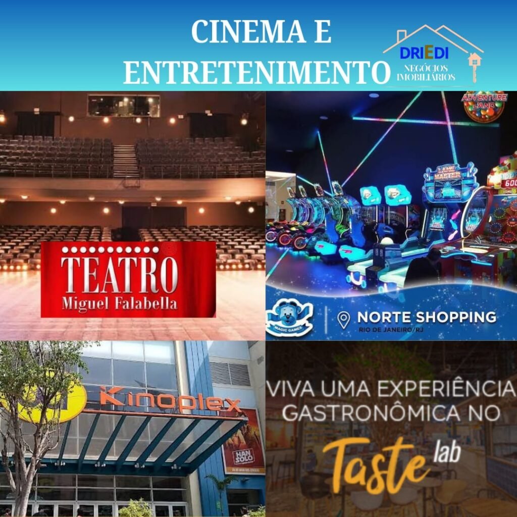 LAZER E COMPRAS: Atualmente a principal área de lazer da região é o Norte Shopping, porque contém vários cinemas, teatro, brinquedos infantis, bares, restaurantes, lojas, academias e eventos.